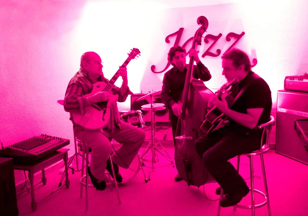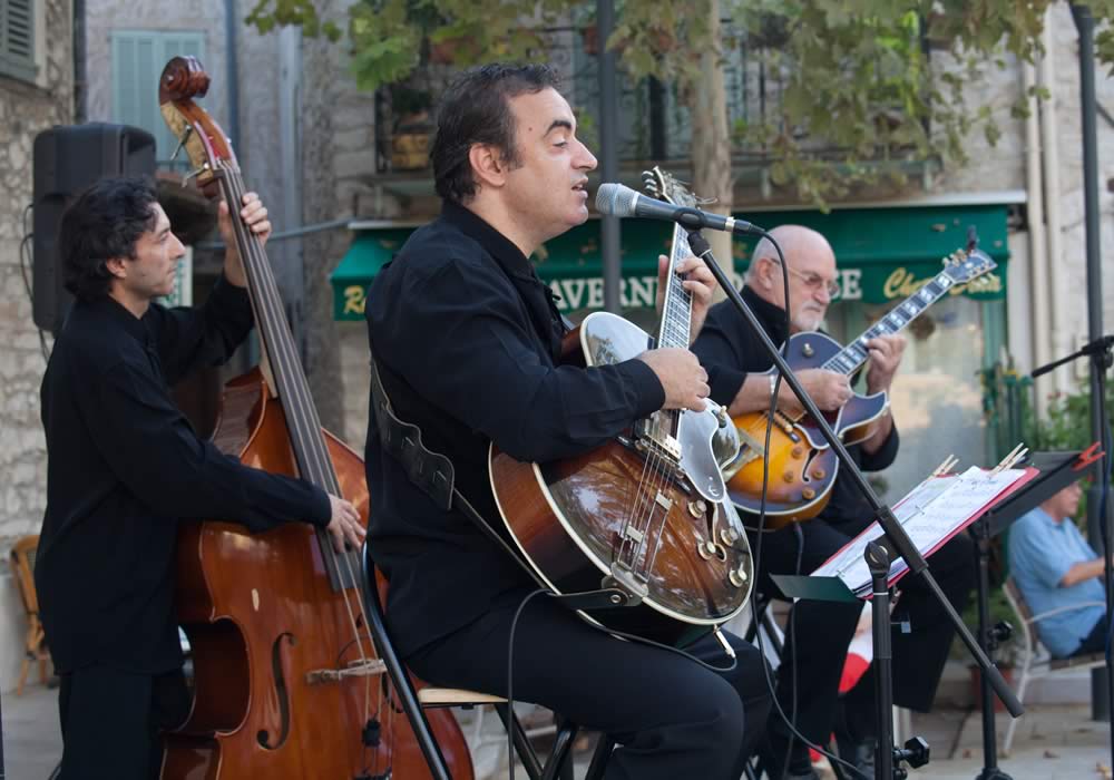 Gabriel Anfosso (guitare), Fabrice Bistoni puis Marc Peillon (contrebasse) viendront rejoindre Jean-Louis pour ce Trio Jazz À Cordes.